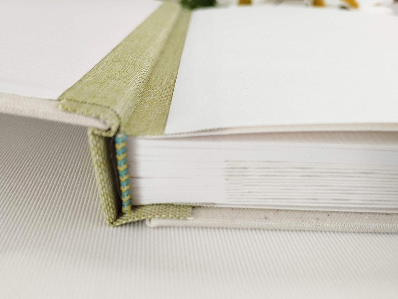 Cada una de ellas lleva una pestaña adicional en la parte del lomo para igualar el grosor de la foto. Lo que permite que el álbum no se deforme y puedas cerrarlo sin problemas.