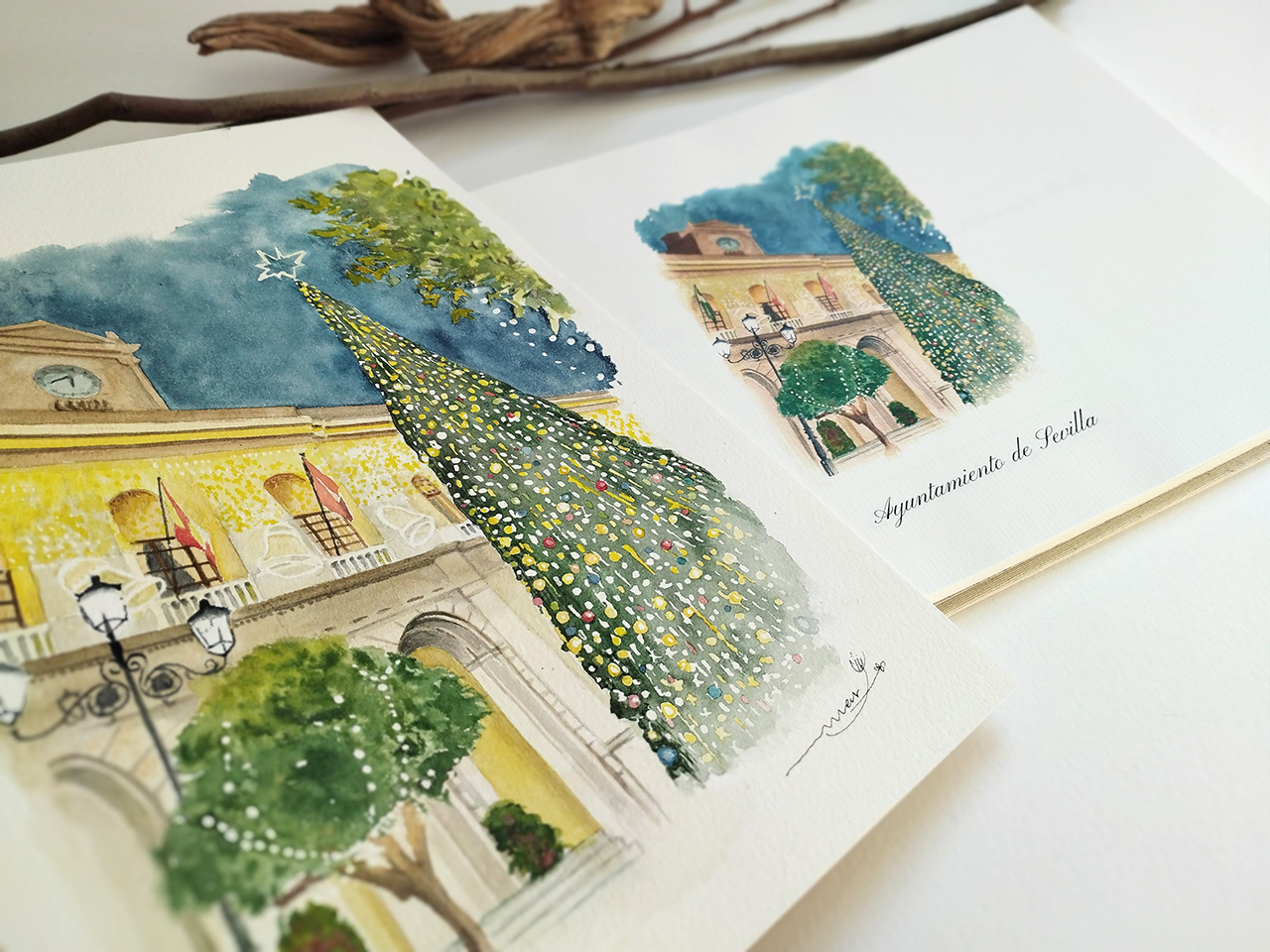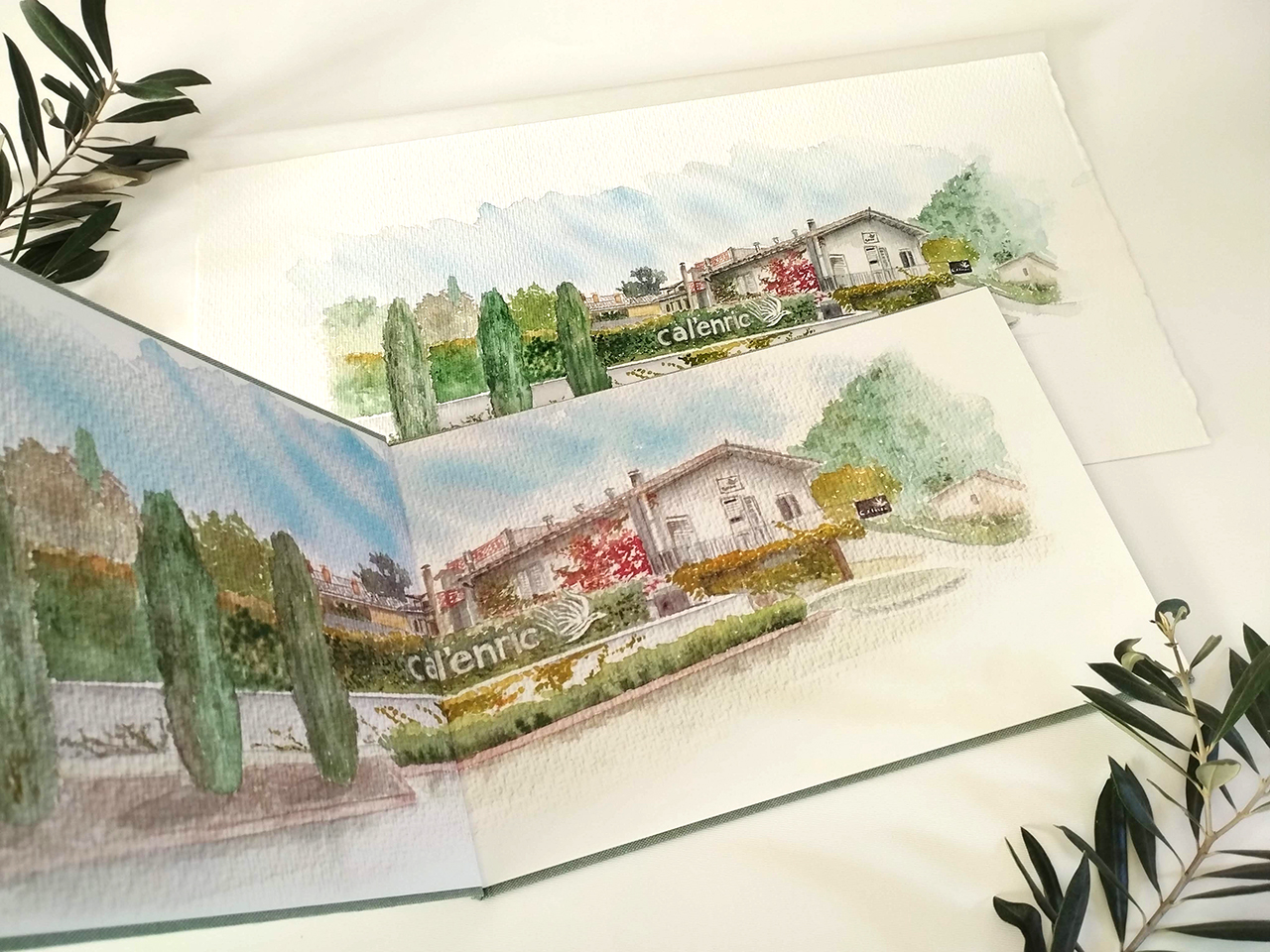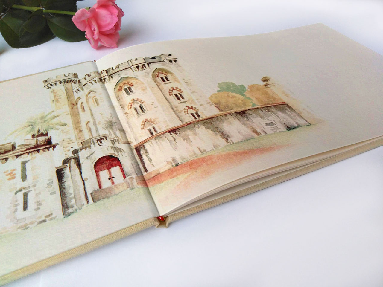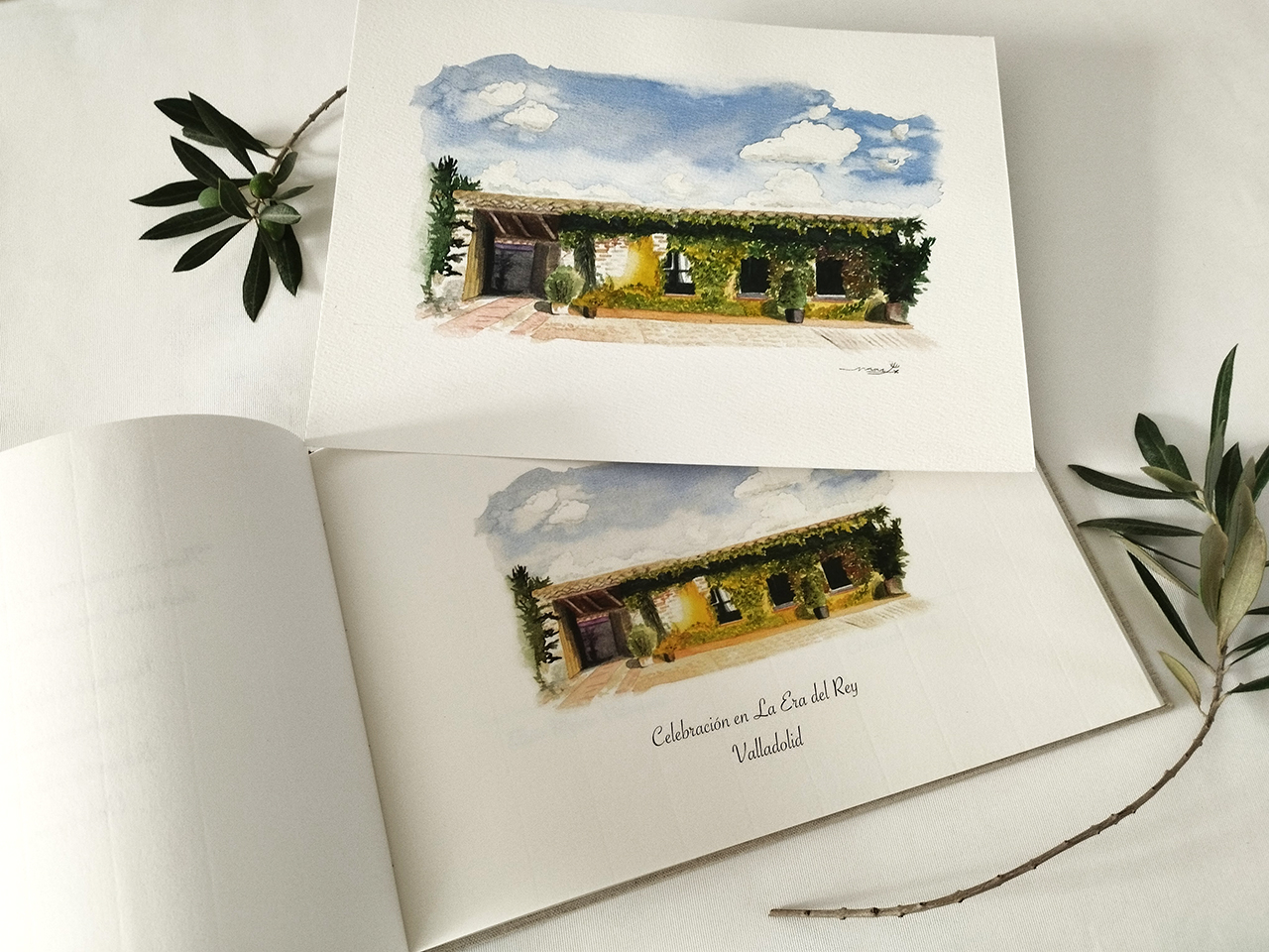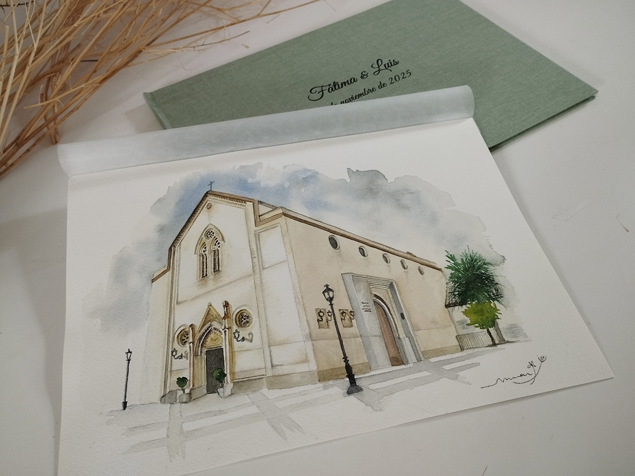 En nuestro taller, podemos pintar en acuarela la iglesia donde os casasteis o el lugar de la celebración.