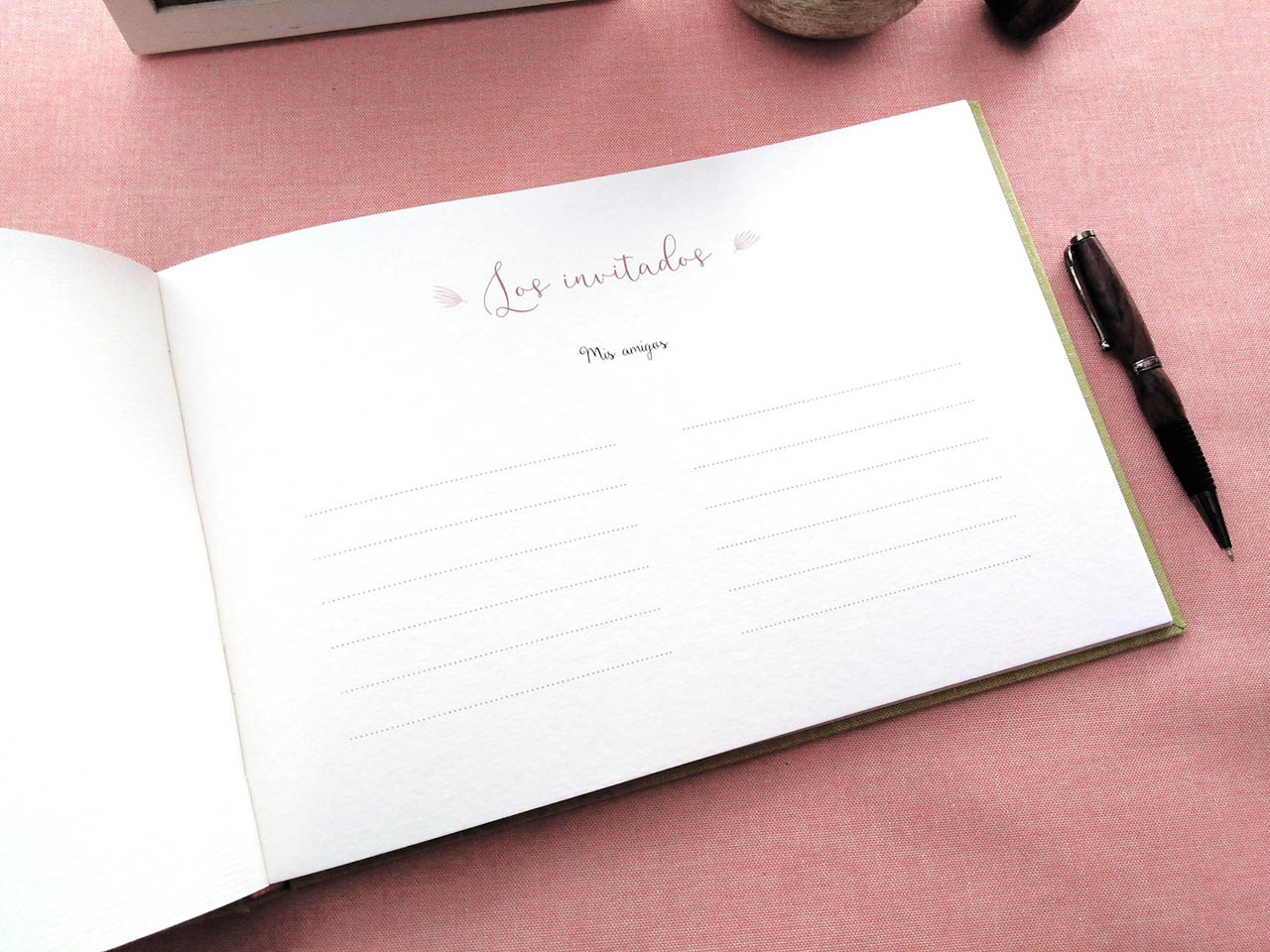 Dos hojas para las dedicatorias. Tres hojas para pegar recordatorios. Cinco hojas con papel cristal para poner las mejores fotografías.